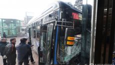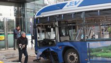 건물과 충돌한 시내버스