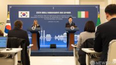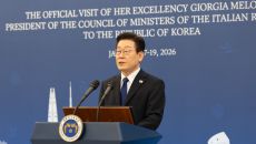 [서울=뉴스핌] 이재명 대통령과 조르자 멜로니 이탈리아 총리가 지난 19일 청와대에서 정상회담 후 공동 언론발표하고 있다. [- 3시간전