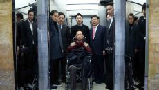 승강기 오른 장동혁 대표