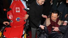 들것에 타는 장동혁 대표