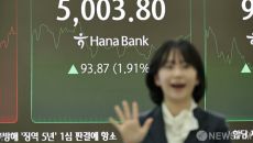 [서울=뉴스핌] 양윤모 기자 = 22일 오전 코스피가 5000 을 돌파하자 서울 중구 하나은행본점 딜링룸에서 직원이 손가락 다- 7시간전