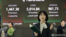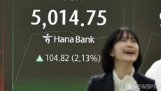 꿈의 코스피 5000선 돌파에 미소짓는 하나은행 직원