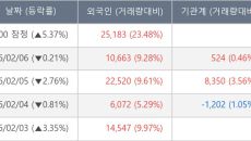 [장중수급포착] 케이씨, 외국인 5일 연속 순매수행진... 주가 +4.62%