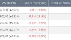 [장중수급포착] 와이씨켐, 외국인 6일 연속 순매수행진... 주가 +3.48%