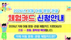 [거제=뉴스핌] 남경문 기자 = 경남 거제시는 아동 문화·관광 체험카드 지원 대상을 초등학생에서 초·중학생으로 확대한다고 20- 2시간전
