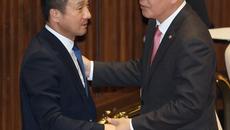 [서울=뉴스핌] 정일구 기자 = 한병도 더불어민주당 원내대표와 송언석 국민의힘 원내대표가 6일 오후 서울 여의도 국회에서 열린- 2026-04-06 15:05