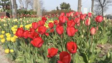 속초시, 청초호 유원지 봄꽃 화단 조성 완료…벚꽃·튤립 7만 본 개화 임박