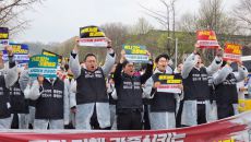 [서울=뉴스핌] 박민경 기자 = 대한변호사협회와 전국 변호사들이 변호사시험 합격자 수 감축을 요구하며 정부 과천청사 앞에 집결- 2026-04-06 14:02