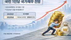 [세종=뉴스핌] 이정아 기자 = 국가채무가 1300조원을 넘어선 가운데 국민 1인당 부담액도 2550만원대로 올라섰다. 여기에- 2026-04-06 12:55