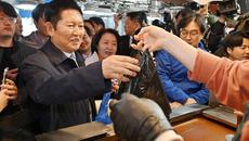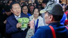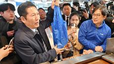 '장바구니도 파란색', 수원 못골시장 방문한 정청래 대표