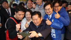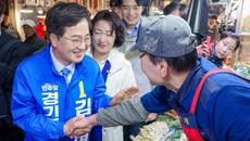 [수원=뉴스핌] 류기찬 기자 = 정청래 더불어민주당 당대표와 경기도지사 경선 후보들이 6일 오전 경기 수원시 팔달구 못골종합시- 2026-04-06 12:54