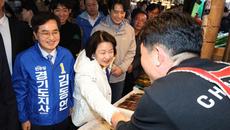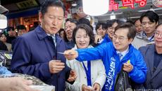 [수원=뉴스핌] 류기찬 기자 = 정청래 더불어민주당 당대표가 6일 오전 경기 수원시 팔달구 못골종합시장에 경기도지사 예비후보들- 2026-04-06 12:45