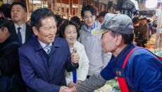 상인들과 인사 나누는 경기도지사 예비후보들