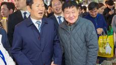 [수원=뉴스핌] 류기찬 기자 = 정청래 더불어민주당 당대표가 6일 오전 경기 수원시 팔달구 못골종합시장에 경기도지사 예비후보들- 2026-04-06 12:44