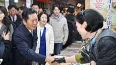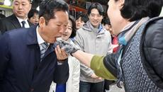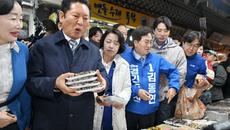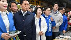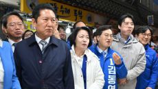 [수원=뉴스핌] 류기찬 기자 = 정청래 더불어민주당 당대표가 6일 오전 경기 수원시 팔달구 못골종합시장에 경기도지사 예비후보들- 2026-04-06 12:44