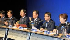 [수원=뉴스핌] 류기찬 기자 = 김동연(왼쪽부터), 추미애, 한준호 경기도지사 더불어민주당 후보자가 6일 오전 수원시 팔달구- 2026-04-06 12:24
