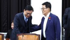 이기헌 의원과 대화하는 이종석 국정원장