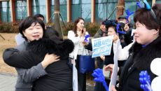 더불어민주당 서영교 의원이 15일 서울 여의도 국회 소통관 앞에서 서울시장 출마선언을 응원하는 지지자들과 포옹을 하고 있다.- 12시간전