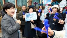 더불어민주당 서영교 의원이 15일 서울 여의도 국회 소통관 앞에서 서울시장 출마선언을 응원하는 지지자들과 인사를 하고 있다.- 12시간전