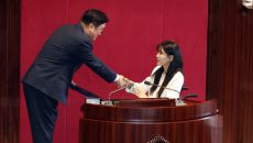 우원식 국회의장이 15일 서울 여의도 국회 본회의에서 국민의힘 인요한 전 의원의 비례대표 의원직을 승계한 이소희 의원의 선서문- 4시간전
