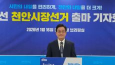 한태선 더불어민주당 당대표 특보가 16일 천안시청 브리핑실에서 기자회견을 열고 6.3지방선거 천안시장 출마를 선언했다. 한 특- 13시간전