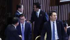 본회의장에 앉은 김민석 총리-정청래 대표
