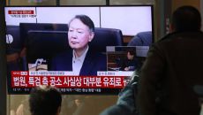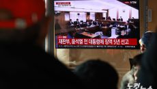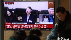 16일 오후 서울역 대합실에서 시민들이 고위공직자범죄수사처(공수처) 체포 방해 혐의 등으로 기소된 윤석열 전 대통령에 대한 1- 14시간전