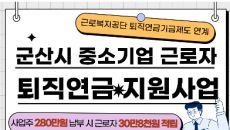 군산시가 중소기업 근로자들의 노후소득 보장 강화를 위해 '퇴직연금 추가 지원사업'을 전국 최초로 다음 달부터 시행하기로 했다.- 15시간전