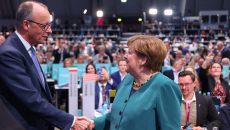 메르켈, 모처럼 기민당 행사에서 메르츠와 악수… 옛 라이벌의 화해?