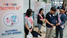 서울교통공사가 17일 서울 영등포구 지하철 2호선 당산역에서 진행한 ‘임산부 배려 캠페인’에서 한 남성이 임산부 체험을 하고- 2025-06-17 23:00