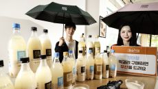 [포토] 장마철 막걸리 할인, 우산도 증정