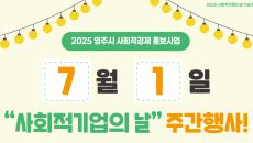 영주시는 오는 7월 1일 '사회적기업의 날'을 맞아 영주시사회적경제지원센터와 협력해 사회적경제의 의미를 알리고 시민 참여를 확- 2025-06-25 15:47