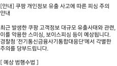 [김형호 기자] 경찰청 전기통신금융사기통합대응단이 쿠팡 고객정보 유출 사고를 악용한 '피해보상', '쿠팡이벤트 참여' 등 명목- 28분전