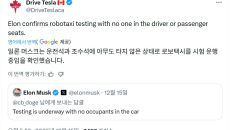 [최은총 기자] SNS와 주식 시장이 테슬라로 뜨겁다. 머스크가 로보택시 시험 주행을 진행 중이란 게시물을 소셜미디어 X에 게- 2025-12-16 18:44