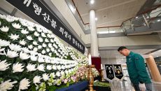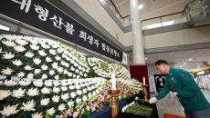 오언석 도봉구청장이 27일 서울 도봉구 도봉구청 로비에 마련된 산불 희생자 추모 합동분향소를 찾아 헌화하고 있다. 도봉구는 대- 2025-03-27 14:21