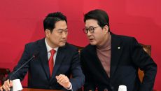 아시아투데이 송의주 기자 = 장동혁 국민의힘 대표(왼쪽)와 신동욱 최고위원이 15일 국회에서 열린 최고위원회의에서 이야기를 나- 15시간전