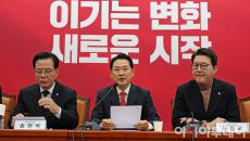 아시아투데이 송의주 기자 = 장동혁 국민의힘 대표(가운데)가 15일 국회에서 열린 최고위원회의에서 발언을 하고 있다. ⓒ "젊- 15시간전