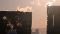 [포토]한파로 난방열 수증기 피어오르는 도심 빌딩
