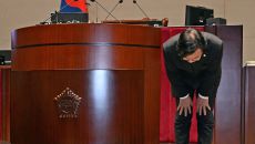 아시아투데이 송의주 기자 = 송언석 국민의힘 원내대표가 22일 국회에서 열린 긴급 의원총회에서 의원들에게 감사 인사를 하고 있- 1시간전