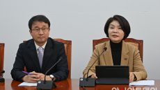 아시아투데이 송의주 기자 = 한정애 더불어민주당 정책위의장이 22일 국회에서 열린 정책조정회의에서 발언을 하고 있다. 왼쪽은- 4시간전