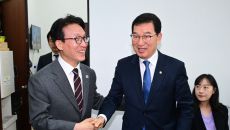 [포토] 신정훈 국회 행안위원장과 악수하는 김민석 총리