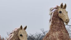 15일 서울 마포구 월드컵공원 유니세프광장에서 한 시민이 억새로 만든 말 조형물을 바라보고 있다. 서울시 서부공원여가센터는 ‘- 20시간전