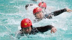 부평소방서 119구조대원들이 21일 오전 인천 미추홀구 문학박태환수영장에서 수난 인명구조 훈련을 하고 있다. 이번 훈련은 겨울- 18시간전
