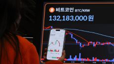 21일 서울 서초구 빗썸라운지 강남본점 전광판에 비트코인 가격이 시세 하락을 보여주는 그래프와 함께 표시돼 있다. 도널드 트럼- 22시간전