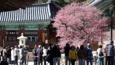 ‘우수’에 핀 통도사 홍매화… 내일까지 포근