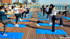25일 경기 시흥시 정왕동 거북섬 타워 앞 해안데크에서 시민들이 바다를 바라보며 필라테스를 하고 있다. 10월 17일까지 열리- 8시간전