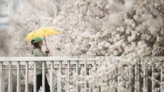 [중부매일 김성렬 기자] 봄비가 내린 27일 시민들이 살구꽃이 활짝 핀 청주 가경천을 지나고 있다. 봄비- 2025-03-27 19:16