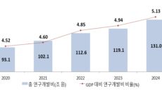 한국 연구개발비, 민간·외국 재원 처음 100조원 돌파