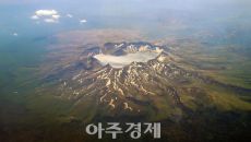 지난 13일 오전 연길공항에서 인천공항으로 가는 비행기 탑승 중 창가에서 바라본 백두산의 모습. 아주경제=남궁진웅 기자 tim- 2025-06-15 17:07