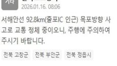 서해안선 목포방향이 사고로 정체 중이다. 한국도로공사는 16일 오전 8시 6분께 "서해안선 92.8km(줄포IC 인근) 목포방- 16시간전